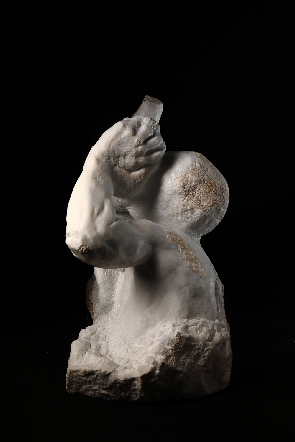 Stone sculpture carved from Utah marble, created in 2024. Measuring 20 x 24 x 13 inches