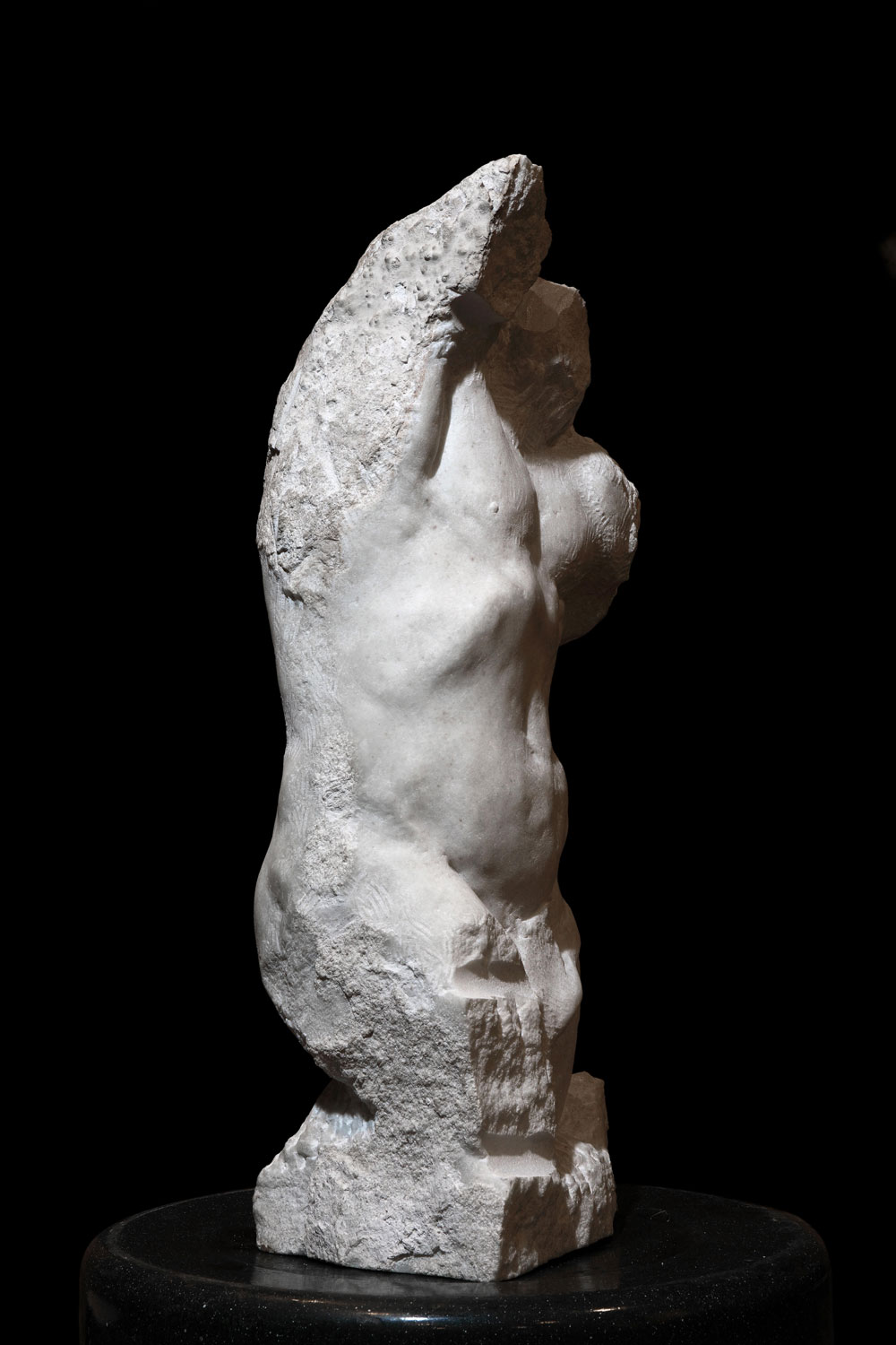 Stone sculpture carved from Utah marble, created in 2024. Measuring 21 x 7 x 7 inches